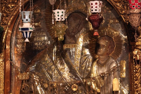 Этот холст находился на своем месте до уже упомянутого нами 1878 года, когда неким русским по фамилии Соколов для иконы была пожертвована серебряная позолоченная риза очень тонкой работы. Запись об этом хранится в ктиторских книгах обители.